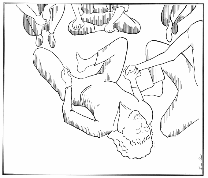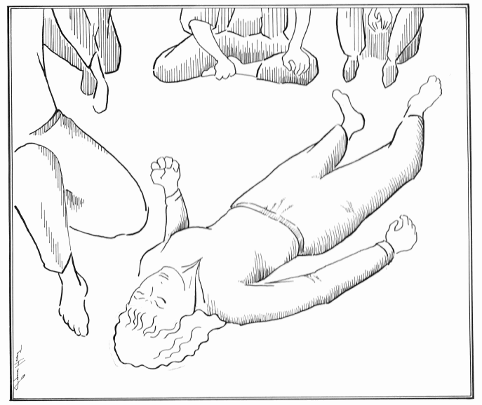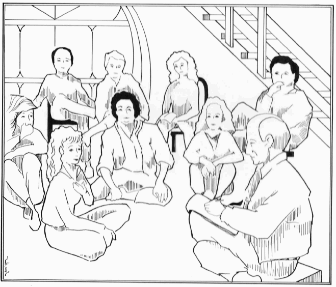 Mindell begin the session by sitting on the floor facing each other, surrounded